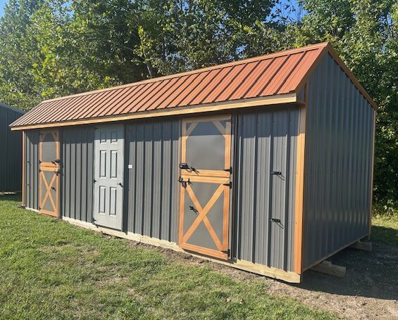 Upgrade your horse care setup with our 10′ x 26′ Deluxe Horse Barn, designed for durability, functionality, and comfort. This premium structure features a secure tack room with flooring, two split Dutch barn doors for easy access and ventilation, and a 36″ fiberglass entry door with a reliable out-swing design. Inside, your horses are protected by hardwood kickboards lining the walls, offering safety and strength where it matters most. Built to last and crafted for convenience, this deluxe barn is the perfect blend of form and function for any serious equestrian.