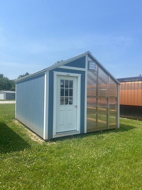 Grow year-round in comfort and style with our 12′ x 16′ Greenhouse with Storage Shed Area—a perfect blend of functionality and durability. Featuring insulated polycarbonate clear panels on the roof and sides, this structure maximizes sunlight while maintaining a stable growing environment. The greenhouse area includes two shelves, a treated deckboard floor, garden hose hookup, and a full electric package—ideal for serious gardeners. A prehung 36″ fiberglass entry door with glass (in-swing) offers easy access, while two gable vents ensure proper airflow. Plus, the built-in storage shed area keeps tools and supplies organized and out of sight.