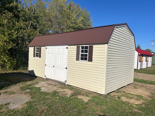 Upgrade your outdoor space with this 12x20 Vinyl Lofted Garden Shed, featuring two spacious 4' x 12' lofts for extra overhead storage, durable double fiberglass doors for easy access, and two 18” x 27” windows with matching shutters for natural light and charm. Built with low-maintenance vinyl siding, this shed combines functionality, style, and lasting durability—perfect for storing tools, equipment, and more with a clean, polished look that enhances any backyard.