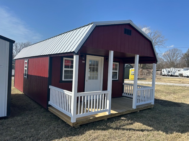Experience the perfect blend of charm and functionality with this 14×28 Lofted Cabin, designed for weekend getaways, guest stays, or a private retreat. Step onto the inviting 6’x14′ open deck porch, then enter through a 36″ fiberglass door with glass into a cozy, well-lit interior featuring four insulated 2’x3’ vertical windows.